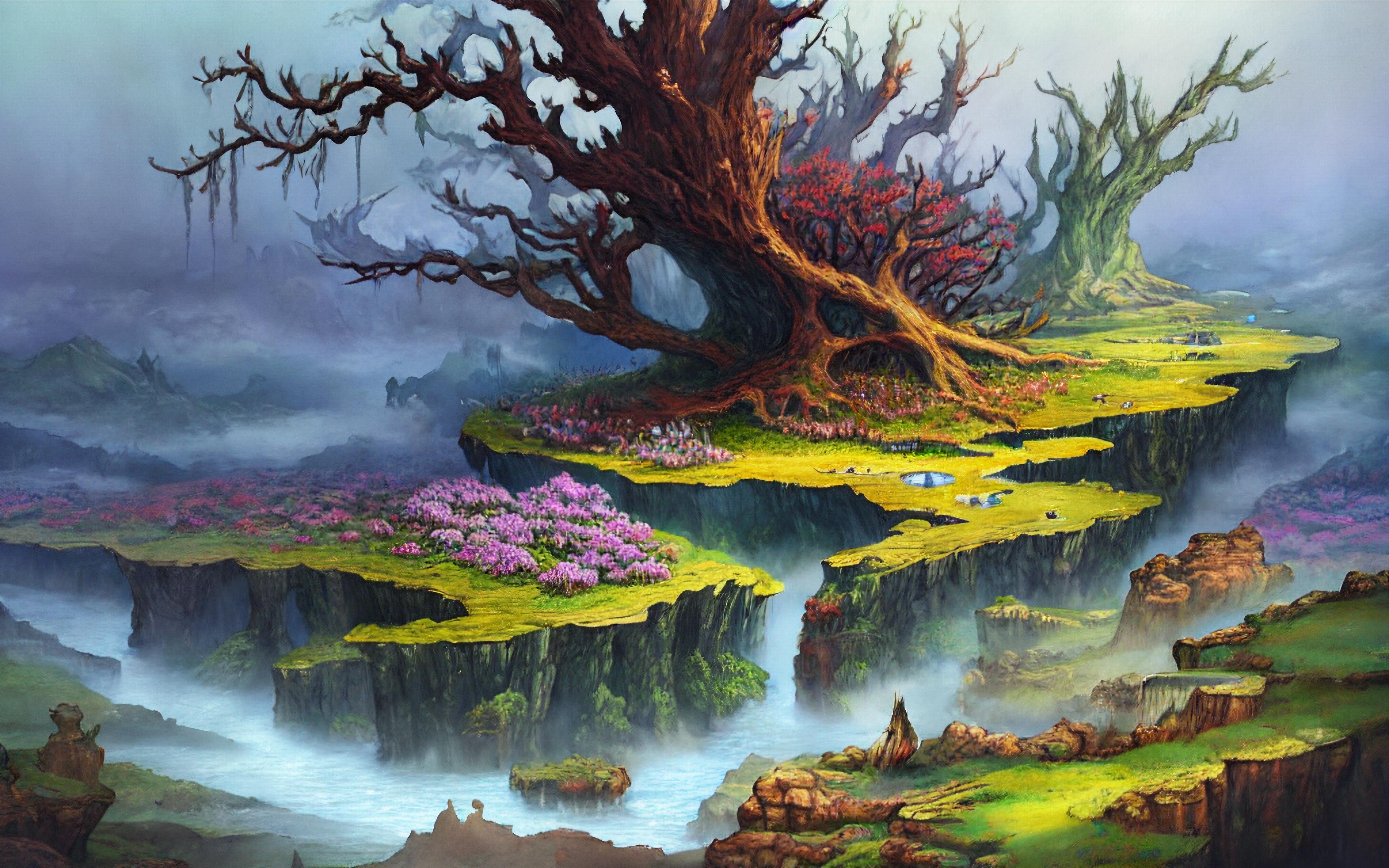 水彩梦幻山谷